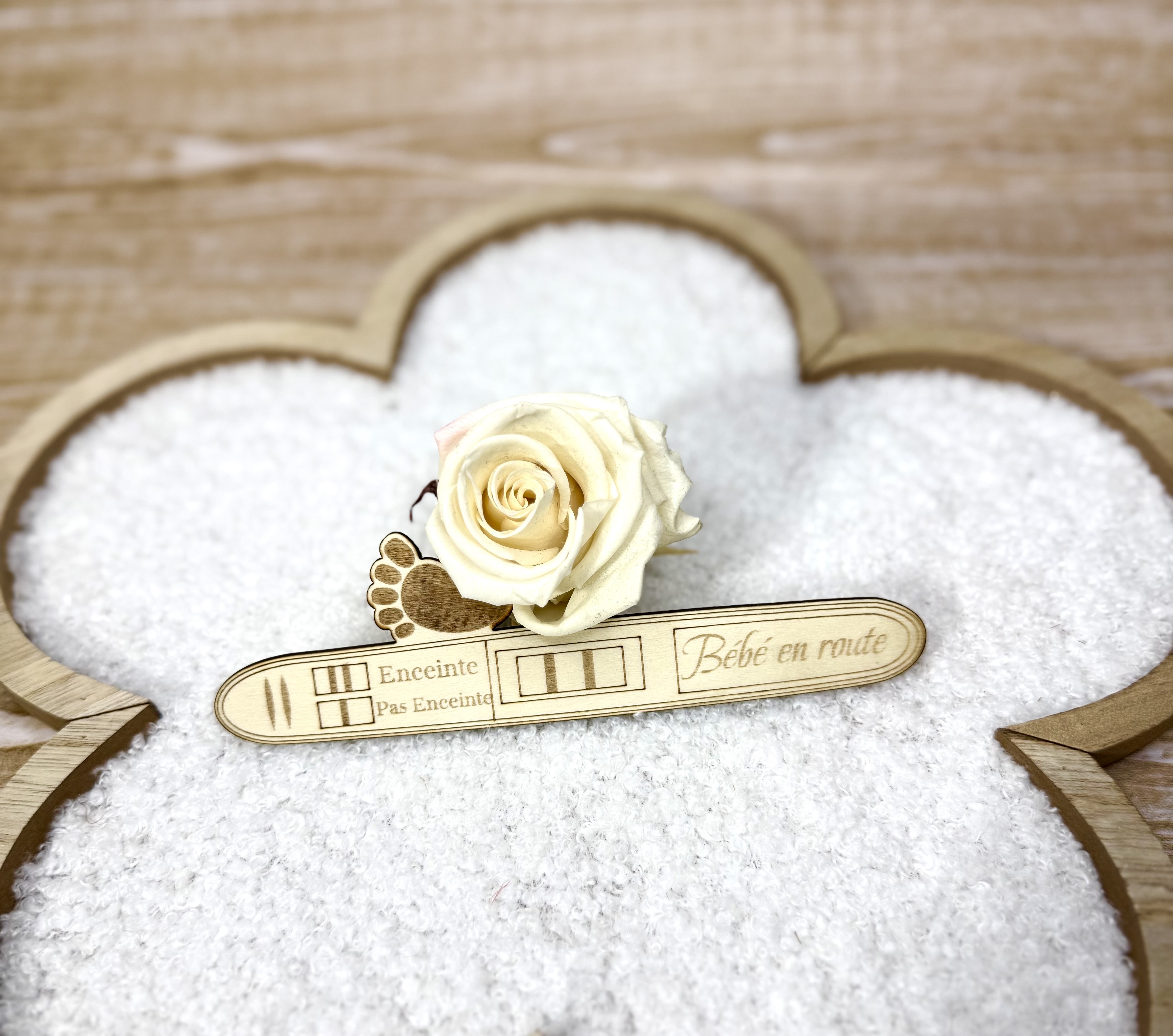Annoncez la plus belle nouvelle de votre vie avec douceur et originalité grâce à notre test de grossesse symbolique en bois gravé.