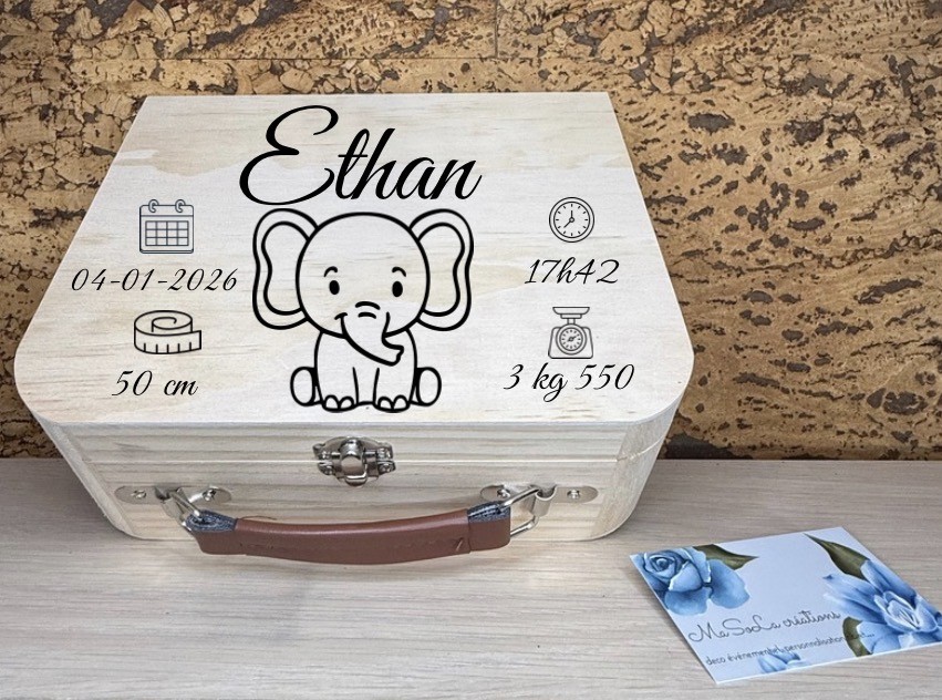 Valisette de naissance personnalisée en bois – Un souvenir pour la vie